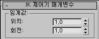 역운동학의 설정과 같습니다. 엔드 이펙터와 체인의 마지막 링크 간의 회전과 위치의 변경에 대한 임계값을 설정합니다.