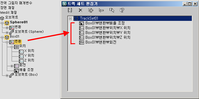 트랙 세트 편집기 대화상자