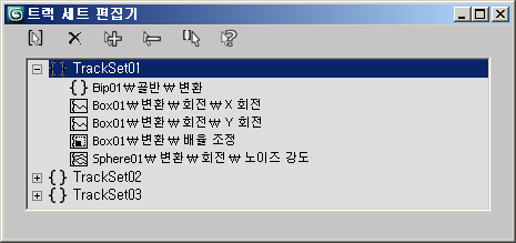 트랙 세트 편집기 대화상자는 트랙 세트라는 애니메이션 트랙 그룹을 만들고 편집할 수 있는 모달리스 대화상자입니다. 이 기능을 통해 트랙을 개별적으로 선택하지 않고 트랙을 불러올 수 있으므로 한 번에 다중 트랙에서 쉽게 작업할 수 있습니다.