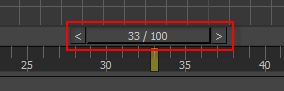 시간 슬라이더에는 현재 시간이 표시되고 그 뒤에 슬래시(/)와 활성 시간 세그먼트의 전체 시간이 차례로 표시됩니다. 예를 들어 25/100은 100프레임 중 프레임 25를 의미합니다. 현재 시간은 현재 시간 필드에도 나타납니다. 장면이 애니메이션된 경우에는 시간 슬라이더를 드래그할 때 모든 뷰포트에서 재생됩니다.