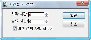 시간별 키 선택 유틸리티는 지정된 시작 및 종료 시간 범위 내에서 키를 선택할 수 있게 합니다. 예를 들면 트랙 뷰 키 창에서 마우스를 이용하여 선택하기 어려운 큰 시간 범위를 선택할 수 있습니다.