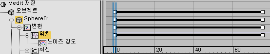 제어기 할당 롤아웃에서 구형의 위치 트랙을 강조 표시합니다.