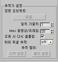 모션 추적기 롤아웃의 하위 픽셀 추적 드롭다운 메뉴에서 수준을 선택하여 각 추적기에 대해 선택적으로 하위 픽셀 추적을 설정할 수 있습니다. 이렇게 하면 형상 추적이 추적기에서 수행되는 해상도가 1픽셀의 1/32까지 정의됩니다.