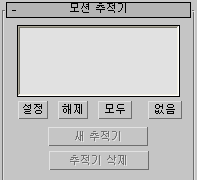 카메라 추적기 유틸리티의 모션 추적기 롤아웃은 이미지 형상 추적기를 설정하고 제어합니다. 생성된 모든 추적기는 여기에 나열되며 확인 표시 사용, 추적기 번호, 연결 장면 점 오브젝트 이름 및 활성 프레임 범위가 표시됩니다. 추적기를 선택하려면 리스트 내부를 클릭합니다. 하위 픽셀 추적을 위한 컨트롤도 제공합니다.