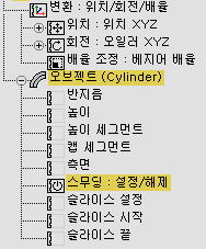 추가를 클릭합니다. 트랙 뷰에서 원통 트랙 아래 가시성 트랙을 추가합니다.