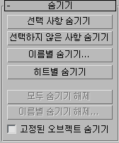 리스트에서 선택한 오브젝트를 숨기는 데 사용할 대화상자를 표시합니다. 거의 동일한 컨트롤을 설명하는 장면에서 선택을 참조하십시오.