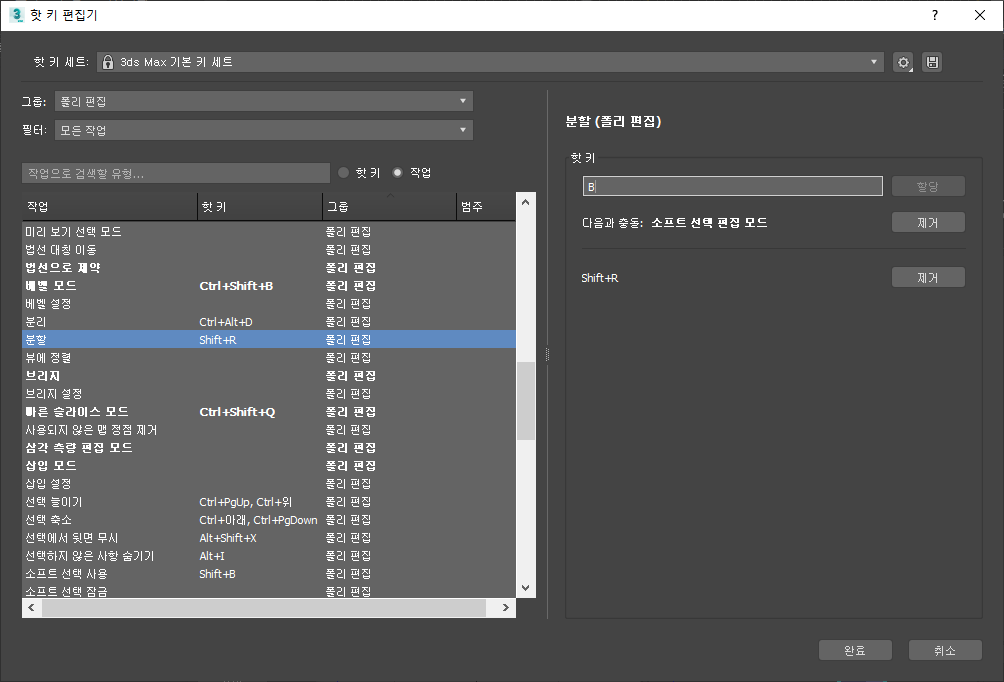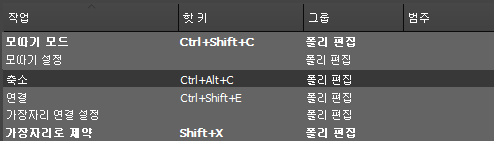 작업에 할당된 핫 키가 이미 있는 경우 둘 다 아래 리스트에 나타납니다. 작업에 핫 키가 없으면 아래 절차에 따라 핫 키를 추가할 수 있습니다.