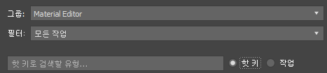 - 해당 핫 키를 기준으로 작업 리스트를 필터링합니다. 모든 작업을 표시하거나, 이미 할당된 핫 키가 있는 작업만 표시하거나, 사용자화한 핫 키가 있는 작업만 또는 저장되지 않은 핫 키가 있는 작업만 표시할 수 있습니다.