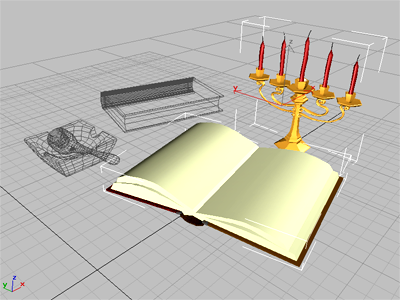 뷰포트가 와이어프레임으로 설정된 경우 선택한 오브젝트가 음영 처리되므로 더 선명하게 시각화할 수 있습니다. 장면의 다른 모든 오브젝트는 와이어프레임에 나타납니다.