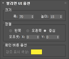 사용자가 마우스로 클릭하여 설정하고 해제할 수 있는 표준 3ds Max 확인 버튼에 대한 옵션입니다.