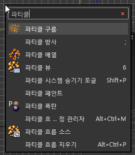 전체 3ds Max 시스템(메뉴 및 작업)에서 특정 명령을 검색하려면 메뉴가 열리지 않은 상태에서 X 키를 누릅니다. 이렇게 하면 마우스 커서 위치에 작은 모든 작업 검색 대화상자가 열립니다. 검색 텍스트를 입력할 때 검색 대화상자에서 일치하는 작업을 표시하는 드롭다운 리스트가 열립니다. 작업을 선택하려면 해당 이름을 클릭합니다. 검색 필드를 지우려면 검색 상자의 오른쪽 끝에 있는 X 아이콘을 클릭합니다. 검색을 종료하려면 명령을 선택하거나 검색 인터페이스의 바깥을 클릭하거나 Esc 키를 누릅니다.
