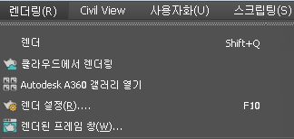 렌더링 메뉴에서 렌더 설정에 아이콘, 줄임표 및 키보드 바로 가기가 있습니다.