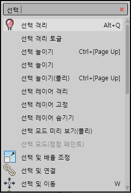 이 대화상자를 통해 이름별로 작업을 검색할 수 있습니다. 작업은 사용자 인터페이스 사용자화 대화상자에서 이름별로 나타나는 해당 명령이며, 일부 명령 패널 기능은 이 대화상자에서 사용할 수 없습니다.