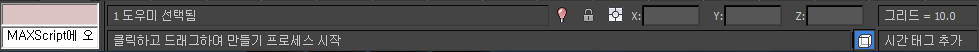 상태 줄에는 선택된 오브젝트 수와 유형이 표시됩니다. 상태 줄은 화면 아래쪽, 프롬프트 행 바로 위에 있습니다.