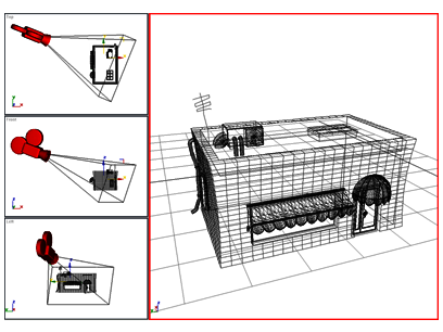 다중 뷰포트를 사용하면 장면을 시각화하는 데 도움이 됩니다. 여기서 가장 큰 뷰포트에는 다른 뷰포트에 표시된 카메라의 뷰가 표시됩니다.