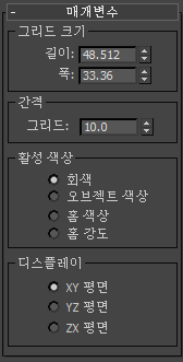 각 그리드 오브젝트의 매개변수 롤아웃에는 XY 평면, YZ 평면 및 ZX 평면의 세 개의 옵션이 있는 표시 그룹이 있습니다. 그리드 오브젝트의 세 평면 중에서 뷰포트에 표시되는 평면을 결정합니다.
