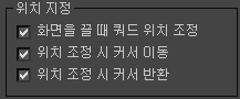 위치가 조정될 때 쿼드 메뉴의 새 위치로 커서를 이동합니다.