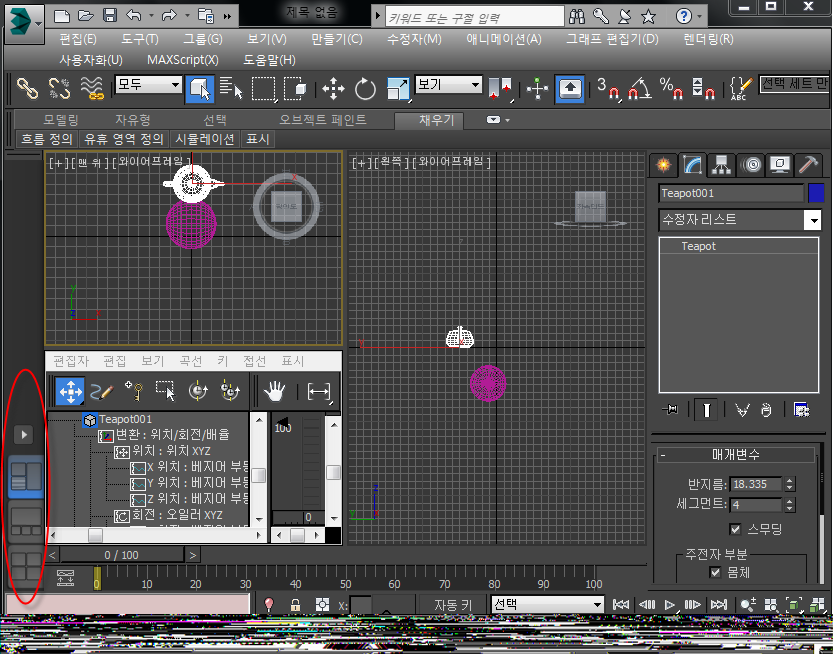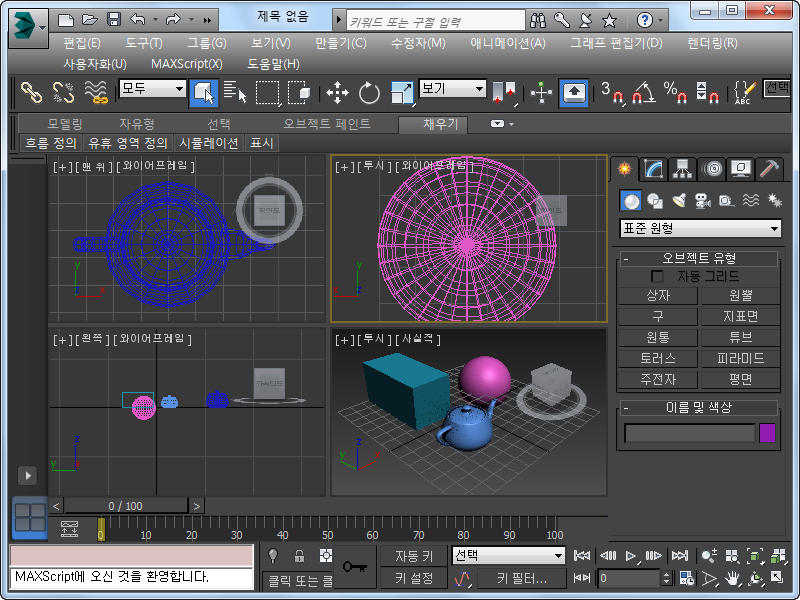 뷰포트 레이아웃 기능을 사용하면 3ds Max의 여러 가지 작업 흐름을 용이하게 할 수 있습니다. 이 절차에서는 장면의 여러 뷰와 확장된 뷰포트를 사용하도록 설정하는 과정을 보여 줍니다.