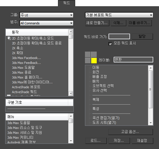- 고급 쿼드 메뉴 옵션 대화상자를 엽니다.
