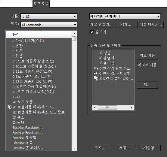3ds Max의 리스트 및 주 도구 모음에서 해당 버튼을 제거합니다.
