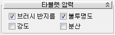 켜져 있는 경우 브러시를 적용할 때마다(연속 스트로크 내에서 적용하는 경우 포함) 브러시 강도를 최대값과 최소값 사이에서 임의 지정합니다.