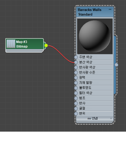 와이어를 분산 색상 입력 소켓에 드롭하면 해당 맵이 재질의 분산 색상 구성요소에 적용됩니다.