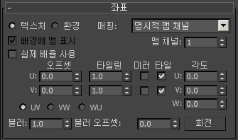 텍스처 또는 환경 매핑 선택에 따라 리스트 항목이 달라집니다.