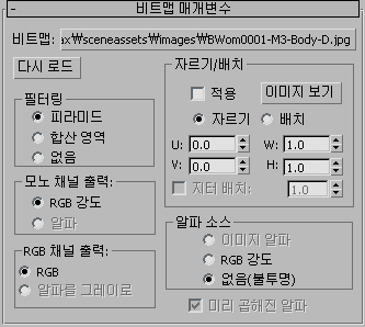 3ds Max에서 비트맵의 알파 채널을 무시하고 (있는 경우) 새로 만들지 않습니다.