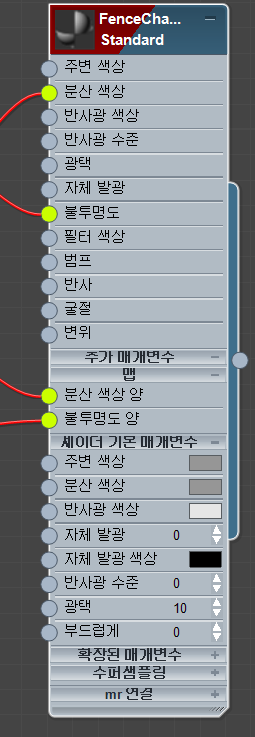 셰이더 기본 매개변수 그룹의 리스트가 열려 있는 동일한 노드