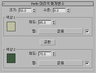 Perlin 대리석 맵은 Perline 터뷸런스 알고리즘을 사용하여 대리석 패턴을 생성합니다. 이 맵은 3D 재질이기도 한 대리석 대신 사용할 수 있습니다.