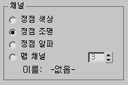 주: 비록 색상, 조명, 알파 채널은 특정한 이름이 있지만 사실 3ds Max는 여기에 어떤 종류의 데이터가 저장되어야 하는지 강제하지 않습니다. 세 채널 모두 4채널(RGBA) 정점 색상 데이터를 보유할 수 있습니다.