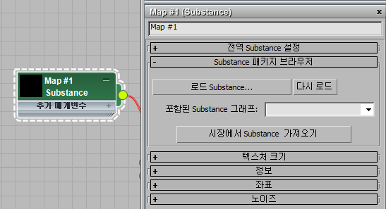 실체 파일을 열면 3ds Max에서 실체 노드와 재질 노드 사이에 맵 출력 선택기 맵 노드를 자동으로 삽입합니다. 이 노드는 여러 가지 다양한 출력 유형(또는 채널)을 동시에 생성하는 대부분의 실체에 필요합니다. 일부 실체는 출력 유형을 하나만 생성하며 이러한 실체에는 맵 출력 선택기가 필요하지 않습니다. 맵 출력 선택기를 사용하면 두 노드의 배선을 변경하지 않고도 재질 입력 소켓에 연결된 실체 맵의 출력 유형을 변경할 수 있습니다.