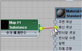 다시 와이어링을 수행하면 3ds Max에서 두 노드 사이에 맵 출력 선택기 노드를 자동으로 삽입합니다.