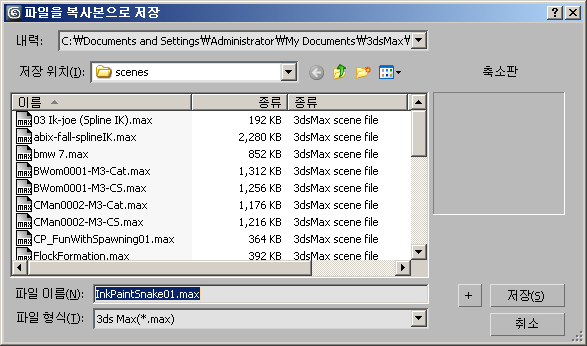 다른 이름으로 복사본 저장은 표준 Windows 저장 대화상자를 표시합니다. 다른 이름으로 복사본 저장은 명령을 사용할 때마다 유일하지만 유사한 이름의 파일을 추천하기 위하여 파일 이름 끝의 수를 증가시킵니다.