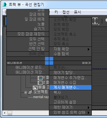매개변수를 외부 참조하려면 트랙 뷰 - 곡선 편집기를 사용하여 매개변수 트랙을 사용자 정의 속성으로 게시합니다. 매개변수를 애니메이션할 수 있습니다.