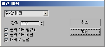 절차 매핑의 법선 매핑 방법은 다양한 벡터 투영 방법을 기반으로 하는 평면 맵을 텍스처 다각형에 적용합니다. 이것은 가장 확실한 방법이지만 매핑 편평화 대화상자에서보다 텍스처 왜곡이 더 클 수 있습니다. 법선 매핑 대화상자에서 클러스터 정의 및 매핑 방법을 제어할 수 있습니다.