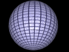 맵을 구에서 투영하여 오브젝트를 둘러쌉니다. 비트맵 가장자리가 구의 극과 만나는 구면의 상단 및 하단에서 이음새 및 매핑 특이점을 볼 수 있습니다. 구형 매핑은 구 모양 오브젝트에 유용합니다.