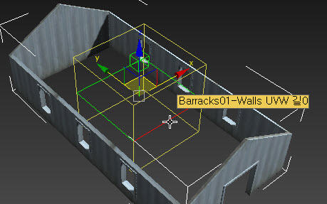 (선택 및 조작)을 켭니다. 수정자 스택의 주 UVW 맵 수준 및 UVW 맵 수정자