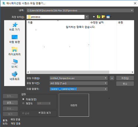 미리 보기가 완료되면 3ds Max에서는 기본적으로 재생 가능한 _scene.avi 미리 보기 파일로 Media Player를 시작합니다. Media Player를 시작하지 않으려면 완료 시 재생 확인란을 선택 취소하십시오.