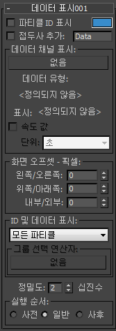 - 사전이벤트의 연산자가 실행되기 전에 파티클 데이터 값을 표시합니다.