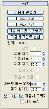선택한 이음새 강도를 늘리거나 줄입니다. 이 값은 이음새가 옷감 오브젝트 나머지 부분과 관련된 구부리기에 얼마나 저항하는지에 영향을 미칩니다. 값이 2.0일 경우 옷감은 오브젝트/패널/정점 그룹 특성에서 정의된 구부리기 저항보다 2배 높은 구부리기 저항을 가집니다.