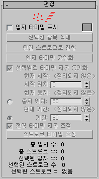 - 선택한 스트로크의 시작 시간입니다. 이 값을 변경하면 스트로크 타이밍 조정을 클릭할 때 새 시간이 적용됩니다.