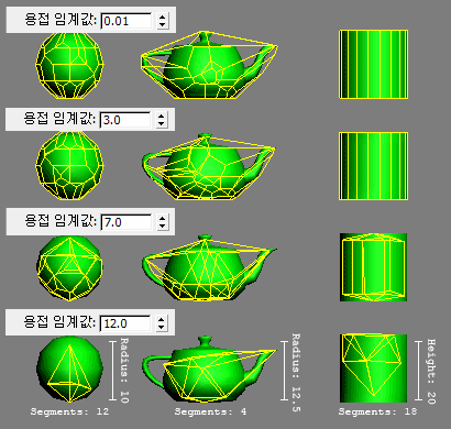 - 이 설정을 사용하여 파티클 모양 정점을 함께 용접하여 충돌 모양의 메시 해상도를 줄입니다.