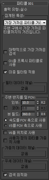 - 설정하면 정밀도는 떨어지지만 집계 속도가 빨라집니다. 가장 가까운 파티클 거리, 가장 가까운 파티클 인덱스 및 가장 가까운 파티클 위치에서만 사용할 수 있습니다. 많은 양의 파티클에서 이 옵션을 설정합니다. 기본적으로 해제되어 있습니다.
