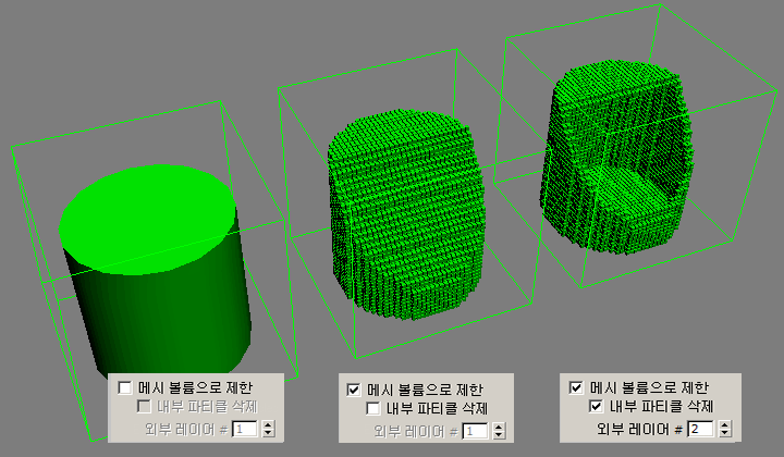- 참조 형상 메시에서 메시 볼륨으로 제한을 사용할 때 메시 볼륨 제한 이후의 파티클 수를 표시합니다.