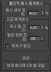 물리적 메시 매개변수 롤아웃(상자)