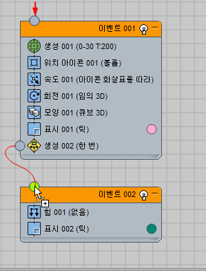 파티클 뷰의 이벤트 표시에는 파티클 다이어그램이 포함되어 있으며 파티클 시스템을 편집하는 직관적인 기능의 전체 범위를 제공합니다.