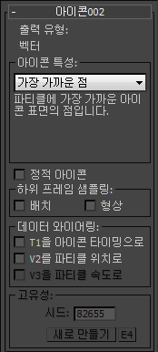데이터 아이콘 연산자 또는 데이터 아이콘 테스트를 파티클 시스템에 추가하면 파티클 흐름에서 아이콘을 만들고 표준 원점에 배치합니다. 연산자/테스트의 롤아웃을 통해 파티클 뷰에서 아이콘의 물리적 특성을 제어할 수 있습니다. 아이콘 하위 연산자를 사용하여 아이콘의 특정 특성에 따라 연산자/테스트에서 계산을 수행할 수 있습니다. 예를 들어 아이콘 하위 연산자를 사용하여 파티클과 아이콘 사이의 거리를 측정하거나 간단히 아이콘의 속도 또는 각도 속도를 결정할 수 있습니다.