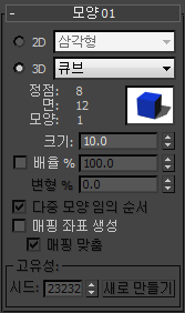 - 설정하면 모양을 임의의 순서로 파티클에 할당합니다. 이 옵션은 다중 모양 형태에만 사용할 수 있습니다. 끄면 모양이 기본 순서대로 할당됩니다. 예를 들어 문자의 경우 A, B, C순으로 할당되고 숫자의 경우 1, 2, 3순으로 할당됩니다.
