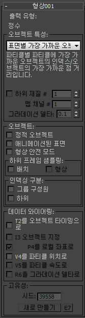 임의 시드를 설정하여 임의로 시드된 다른 함수와 동작을 구분할 수 있습니다. 임의 동작을 변경하려면 값을 입력하거나 새로 만들기를 클릭하여 시드 값을 변경합니다. 임의 표면 점 및 임의 볼륨 점 오브젝트 특성에서만 사용할 수 있습니다.